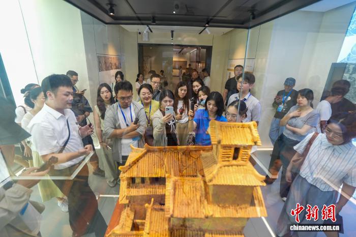 图为采访团观光东汉陶楼。弛倩龙 摄